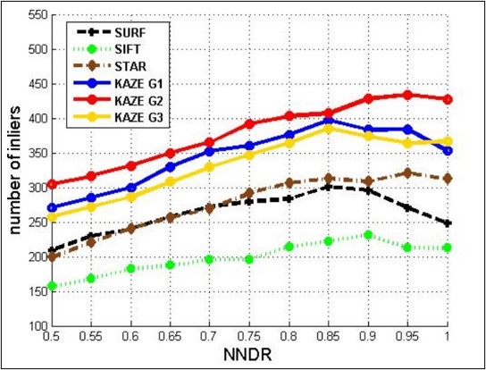 Local features and their descriptors form fundamental components of numerous computer vision algorithms. These features represent patterns or distinct assemblies in an image, like points, edges, or corners. MATLAB’s computer vision toolbox offers various algorithms for detecting these local features and their descriptors. In a comparative analysis, the KAZE algorithm yielded the highest number of matched features. Consequently, the KAZE algorithm is integrated into determining the transformation matrix for defined subsets in considered image pairs.